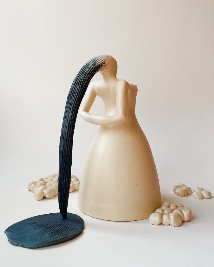 Desde una poética femenina, como depositario de placeres y dolencias, como un contenedor doméstico, indago en mi interior para lograr un lenguaje propio.