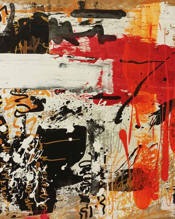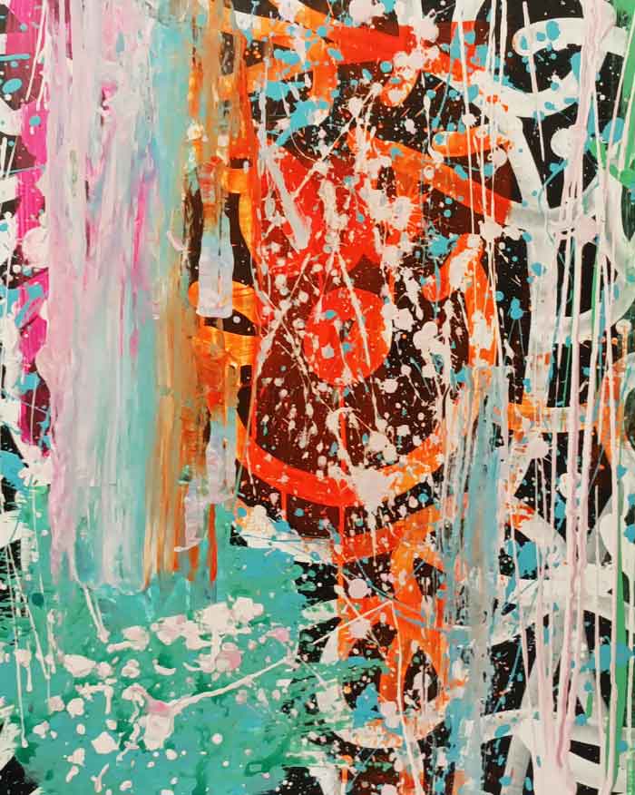 Mi obra trata de explorar lo sensorial y lo abstracto aplicando distintas técnicas y materiales con el fin de crear piezas dónde se descubran capas, colores y trazos plasmados de forma casi que aleatoria.