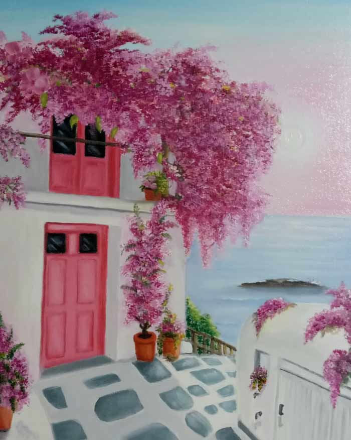 La pintura para mí es un mundo mágico, donde puedo plasmar en lienzos blancos, los colores de mis pensamientos y emociones y sentimientos .