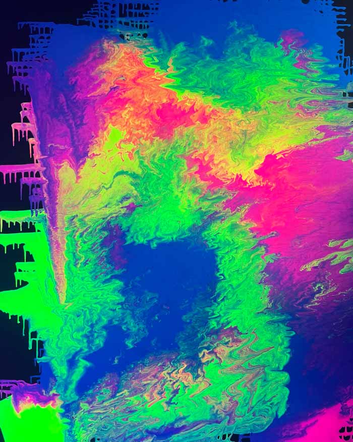 A través de mi marca Uni.verso, exploro el arte fluorescente como forma de conexión. Mis cuadros vibran en la oscuridad, invitando a mirar más allá de lo cotidiano y explorar los colores que definen nuestro mundo.
