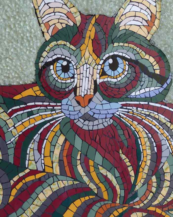 Me gusta reciclar y el mosaico da la oportunidad de rearmar diferentes materiales para transformarlos en obras de arte. Me inspira la naturaleza y también los animales, enamorada de los gatos.