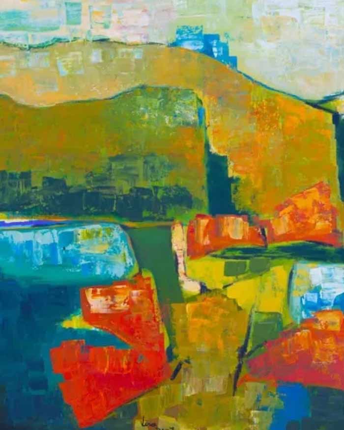 Imagino praderas verdes con flores, muchas flores y montañas al final y de a poco lo voy llevando al abstracto.